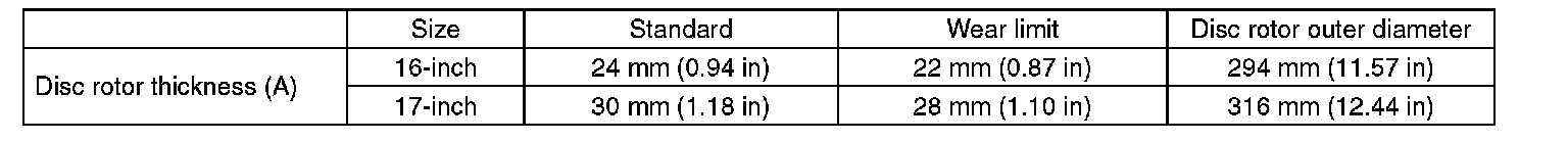 Disc/Rotor Wear Limit