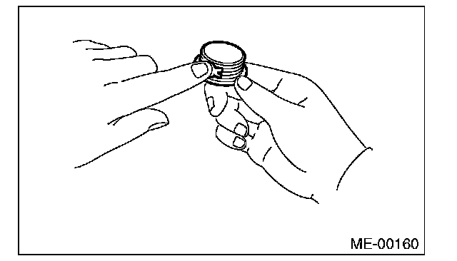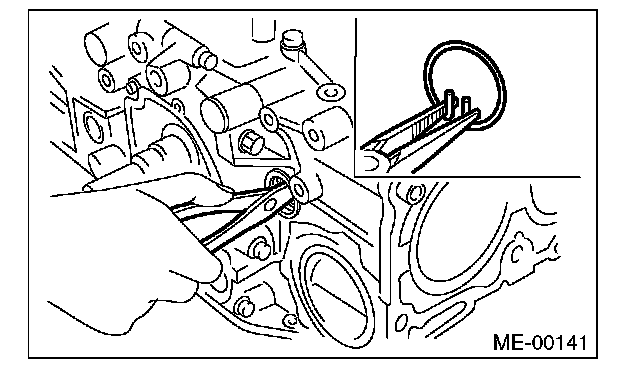 Before positioning the piston on the cylinder block, attach the snap ring in the service hole of the cylinder block, and the piston pin hole on the opposite side.