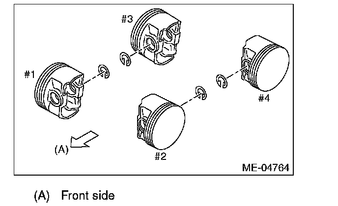 (7) Set the parts so that the #3 and #4 cylinders are on the upper side. Following the same procedures as used for #1 and #2 cylinders, install the pistons and piston pins.