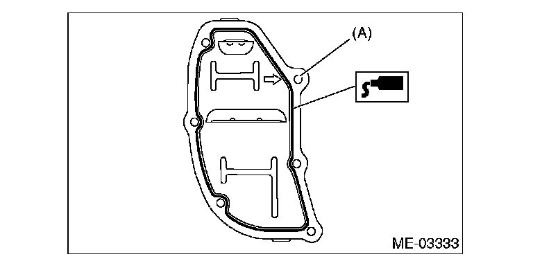 26) Apply liquid gasket to the mating surfaces of the oil separator cover and the threaded portion of bolt (A) shown in the figure (when reusing the bolt), and then install the oil separator cover.