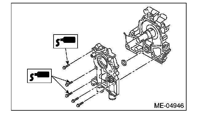 (2) Apply liquid gasket to the mating surfaces of oil pump.