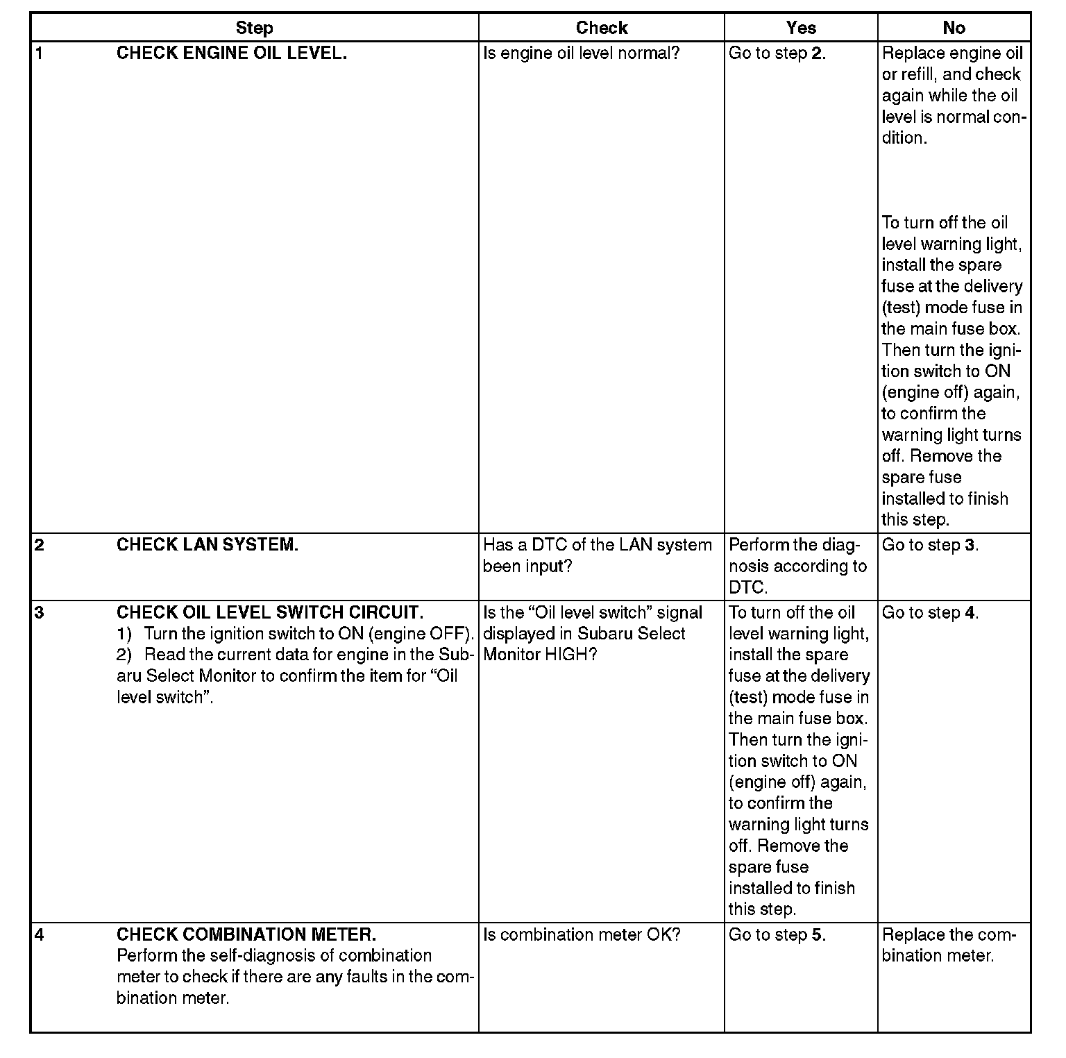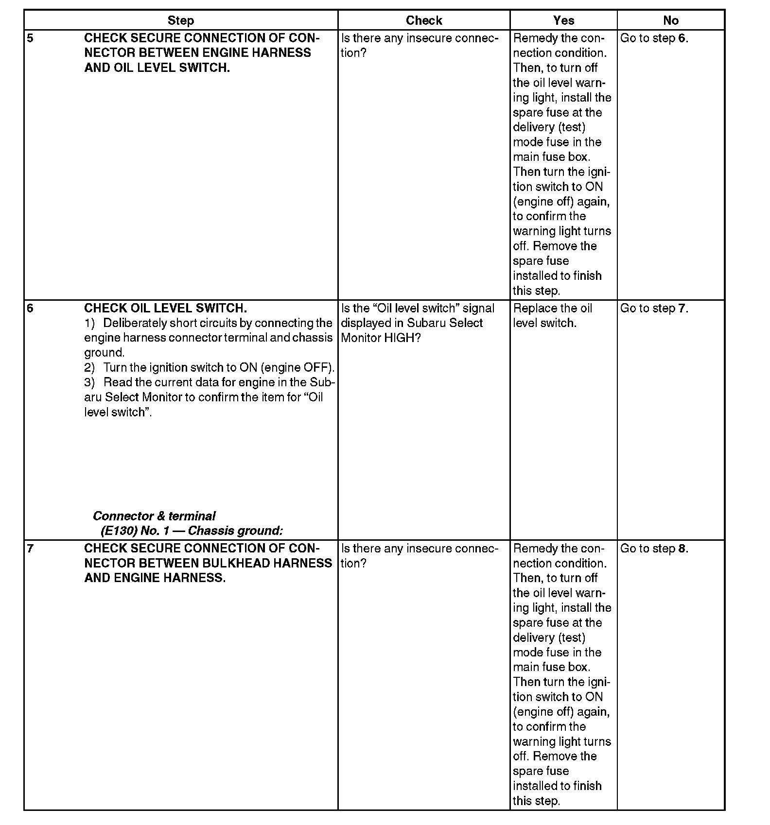 INSPECTION WHILE OIL LEVEL SWITCH WARNING LIGHT IS ON