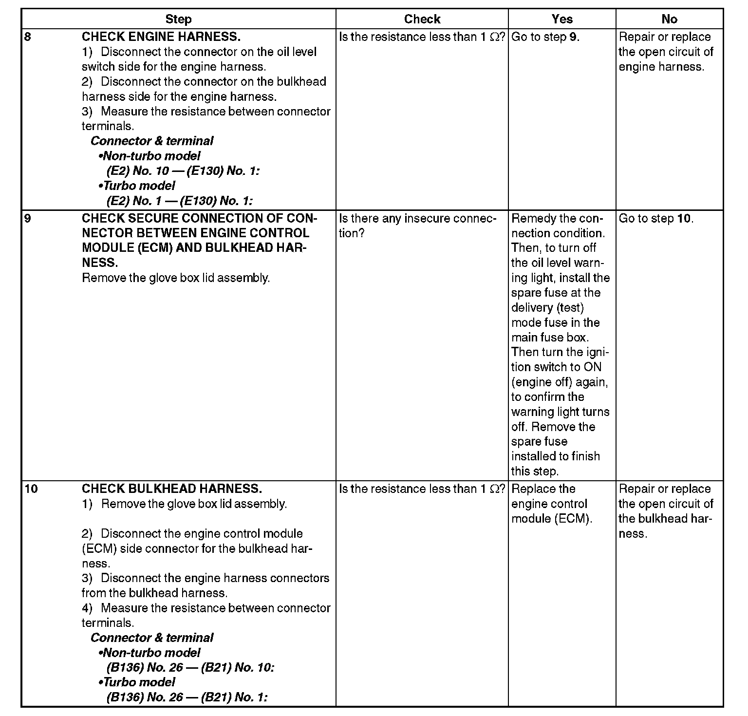 7) Check the engine oil level.