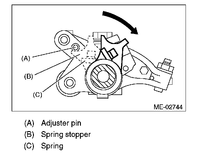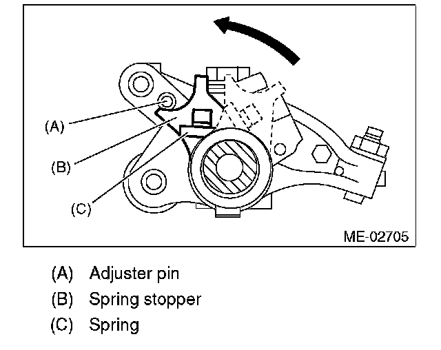 (1) Use the ST to rotate the spring stopper in the direction of the arrow to remove it from adjuster pin.