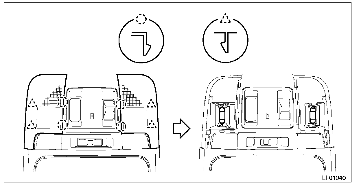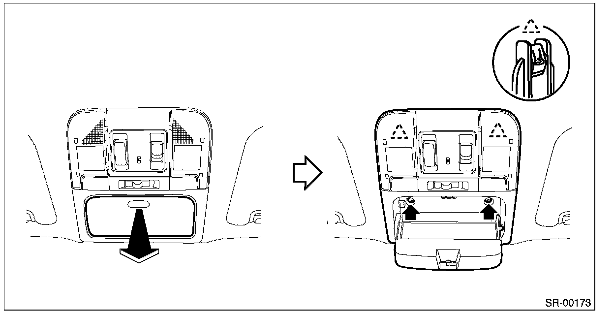 1. Push and open the rear end of the overhead console lid, and remove the screws.