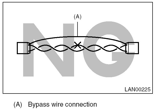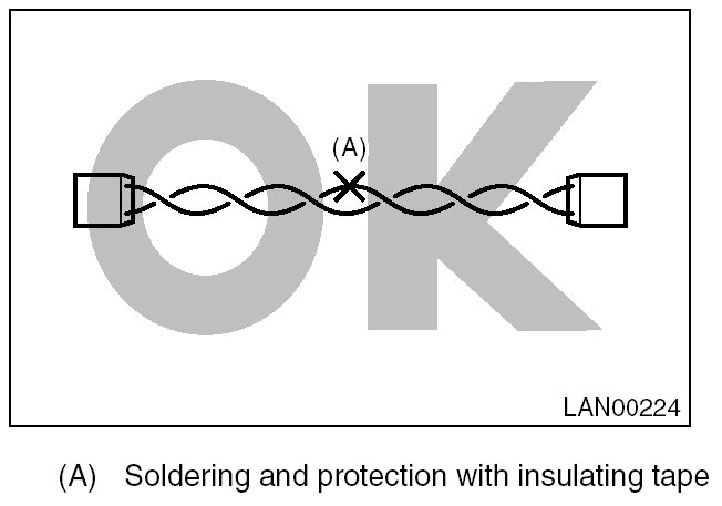 - When repairing the harness, connect the wires using soldering and protect it with insulating tape etc.