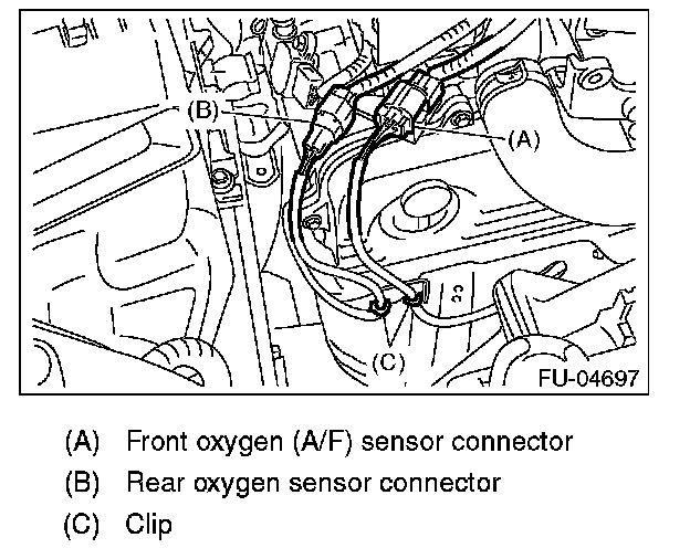 CAUTION: When removing the front oxygen (A/F) sensor, wait until exhaust pipe cools, otherwise it will damage the exhaust pipe.