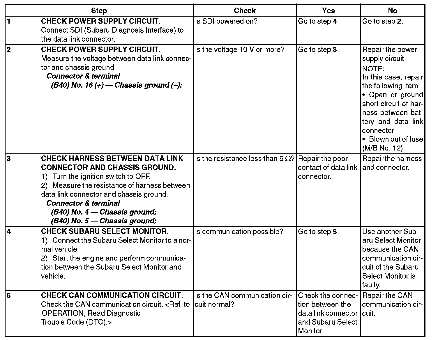 Diagnostic Procedure for Subaru Select Monitor CommunicationCOMMUNICATION FOR INITIALIZING IMPOSSIBLE