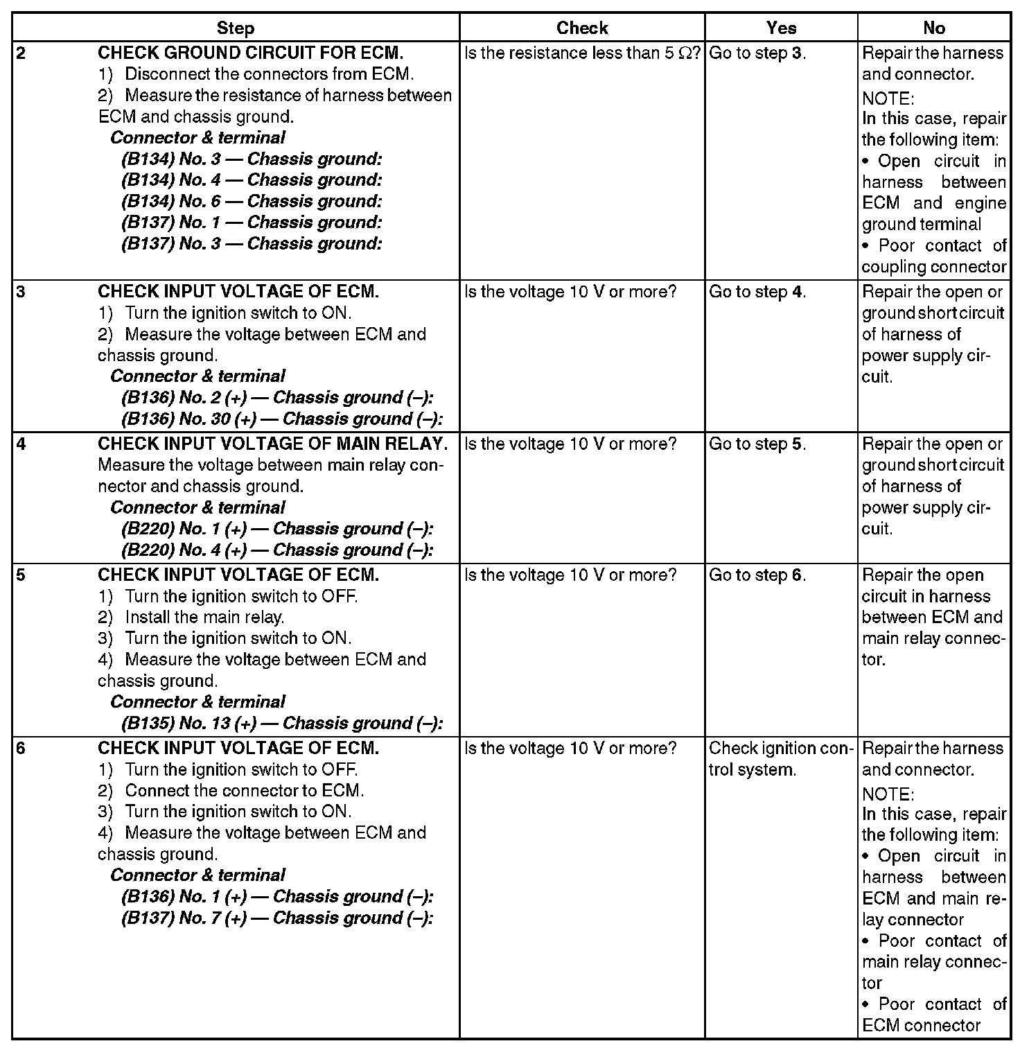 Check Power Supply and Ground Line of Engine Control Module (ECM)