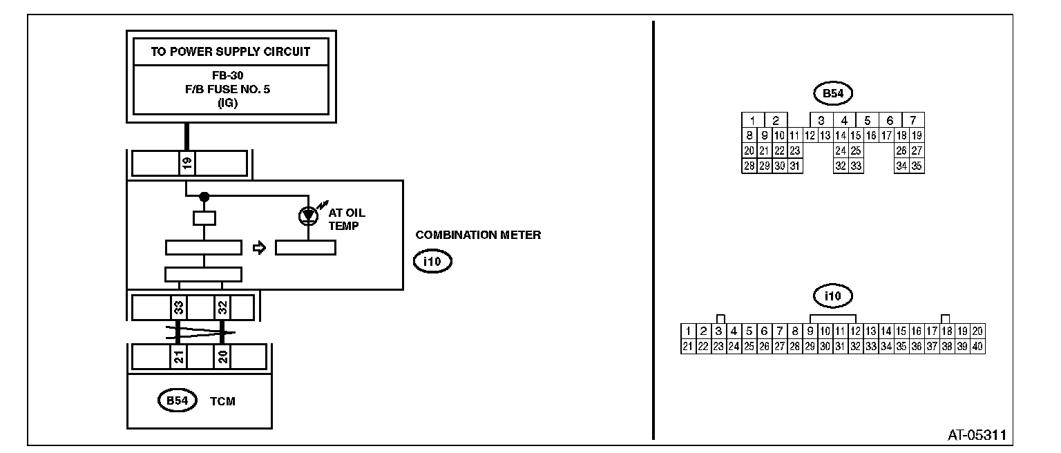 When the AT OIL TEMP light does not operate normally, check the AT OIL TEMP light circuit. AT Oil Temp Warning Light Display