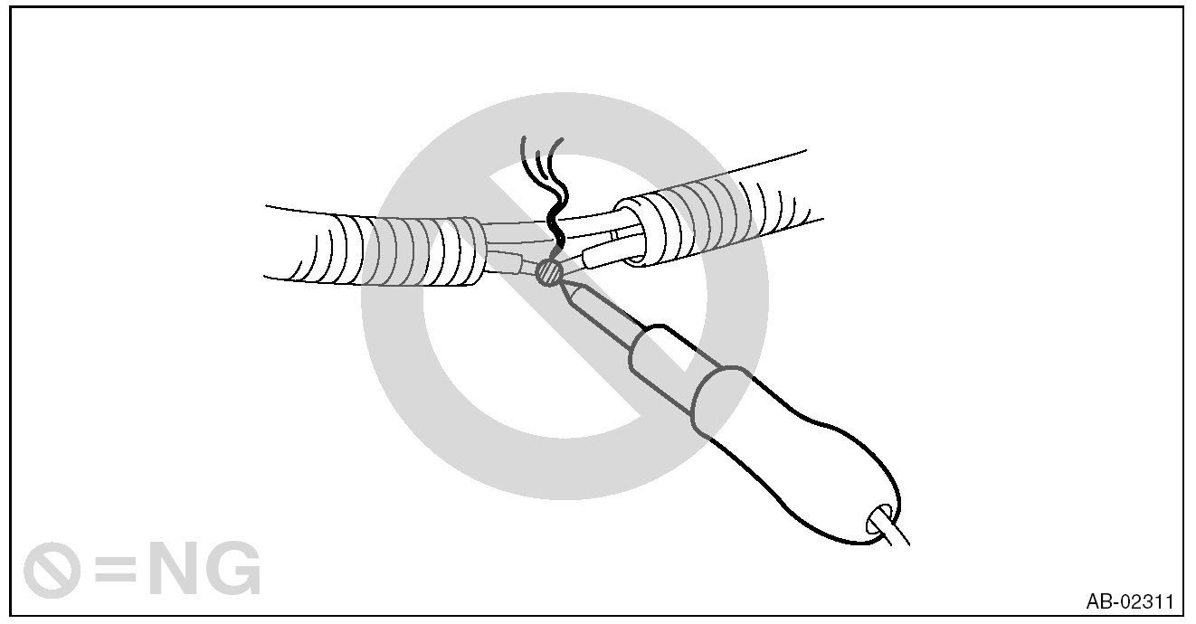 - If damage, open circuit or rust is found on airbag system wiring harness, do not repair the harness. Always replace the faulty harness with a new genuine part.