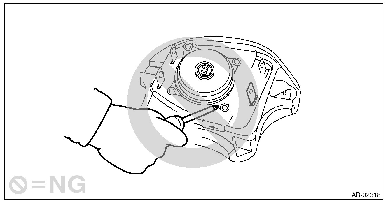 - When storing a removed airbag module, do not place it with the pad side of airbag facing downward. Do not place any objects on the airbag module. Do not pile up the airbag module. If the pad of the airbag module is in contact with other objects, it may cause a serious accident if the airbag accidentally operates.