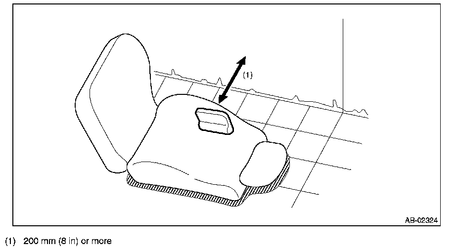 - The removed front seat with airbag module must be kept at least 200 mm (8 in) away from walls and other objects.