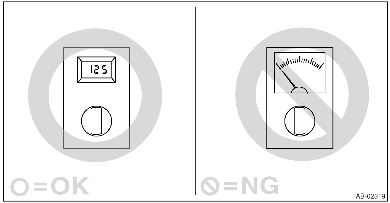 - When checking the airbag system, be sure to use a digital circuit tester. Use of an analog circuit tester may cause the airbag to activate erroneously due to a minimal current inside tester.