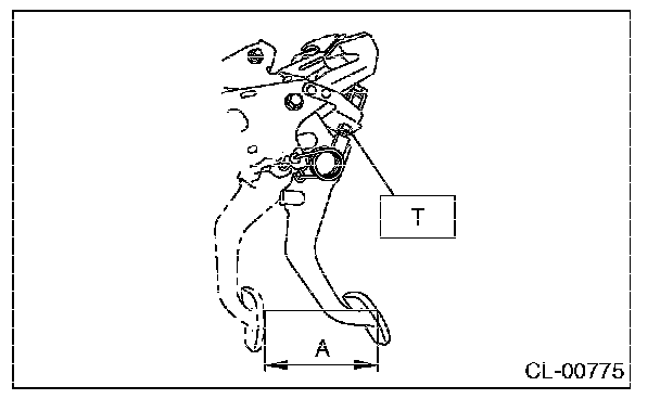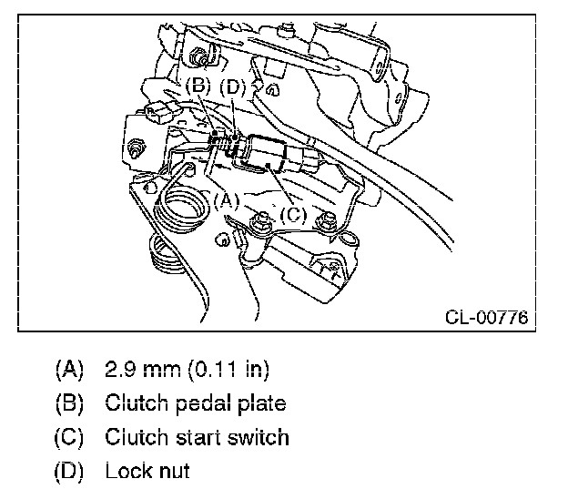 2) Install so that gap (A) of the clutch pedal plate and clutch start switch is 2.9 mm (0.11 in), and tighten the lock nut.