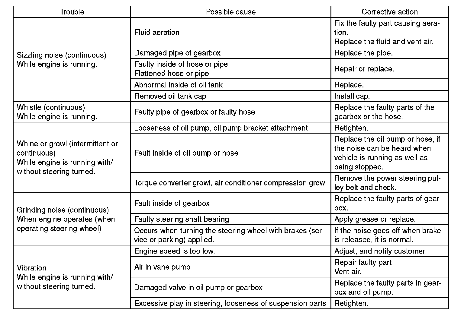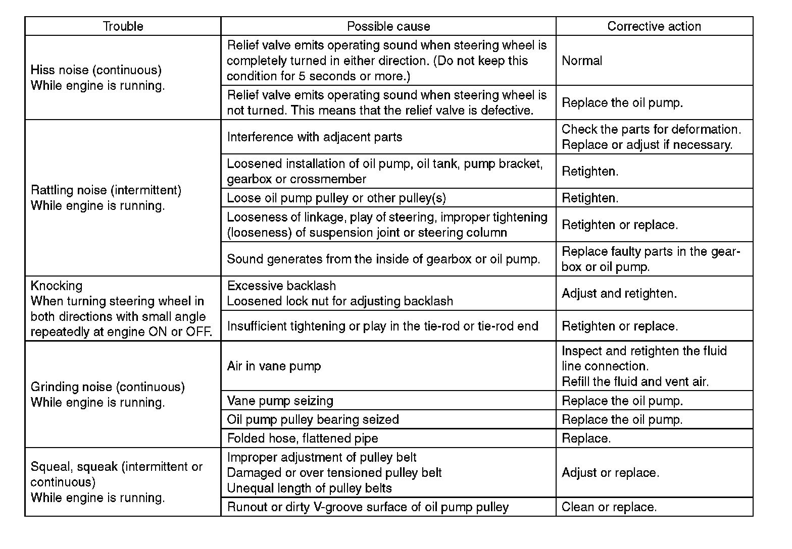 ^ The oil pump normally makes a small whining noise due to its mechanism. Even if a noise is heard when steering wheel is turned at stand still, there is no abnormal function in the system provided that the noise eliminates when the vehicle is driving.