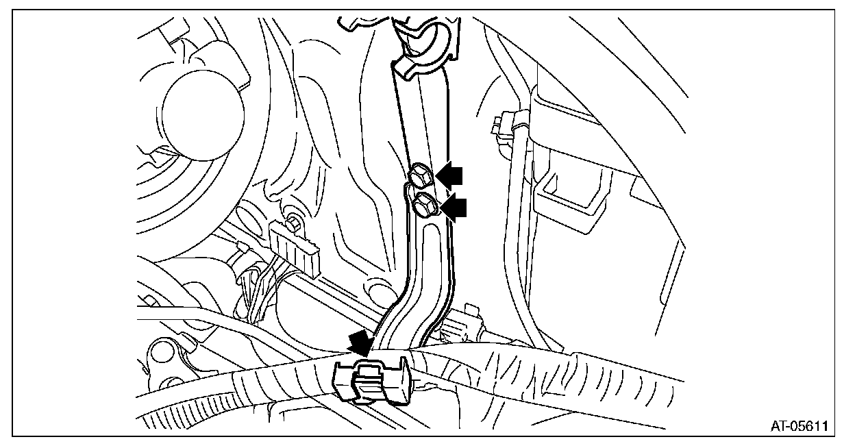 10) Remove the CVTF cooler pipe assembly mounting bolt.