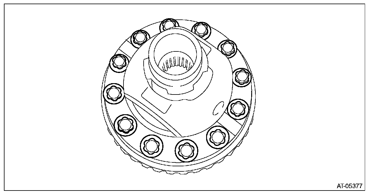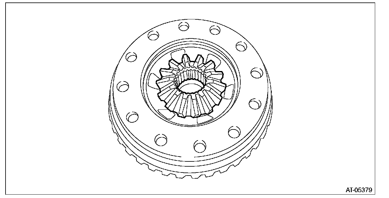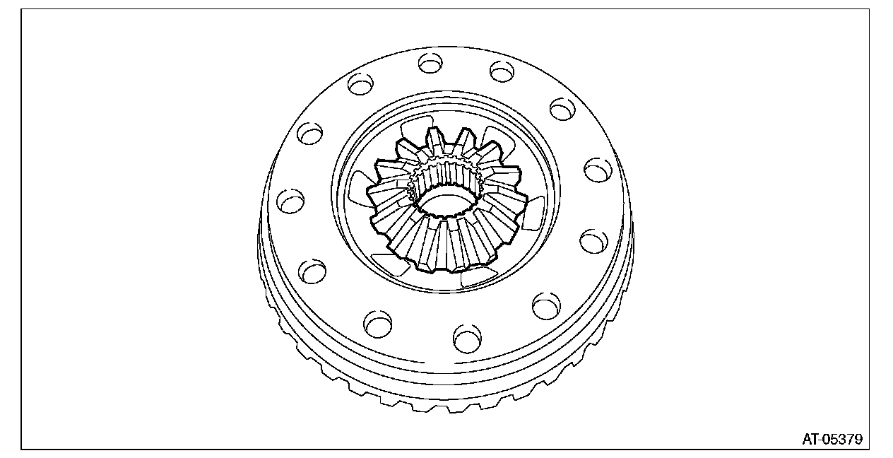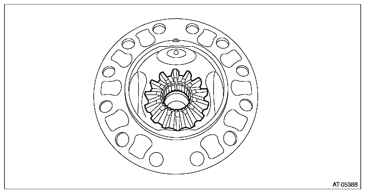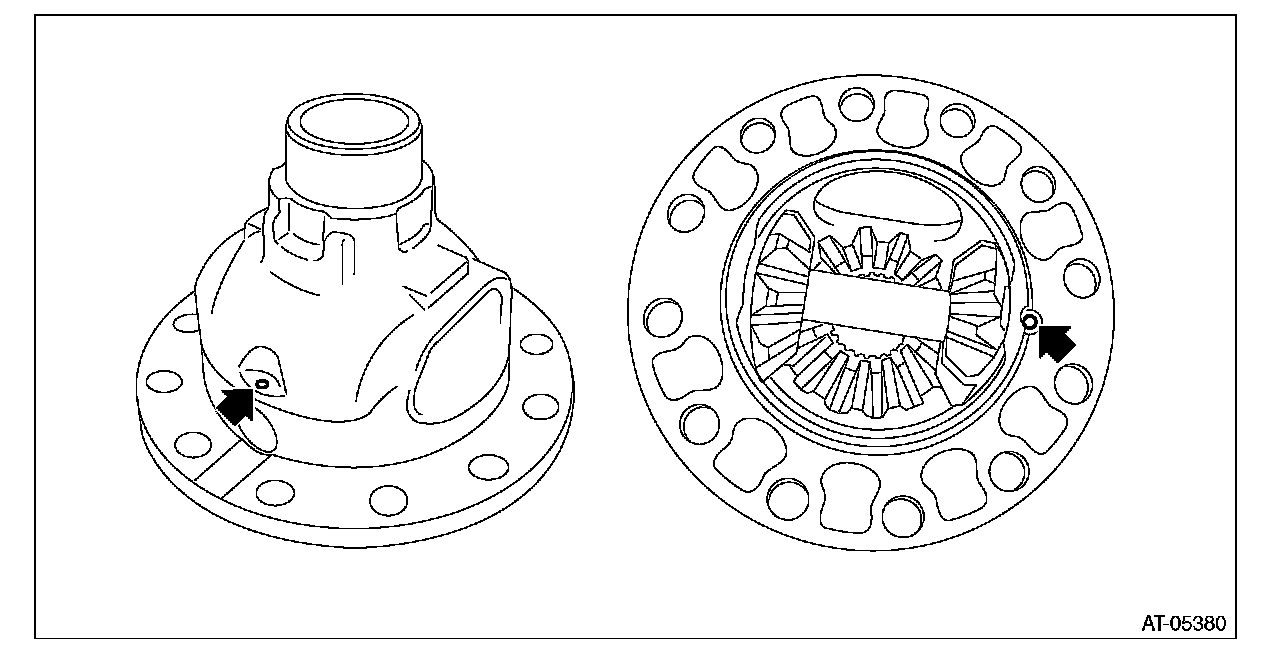 ^ Support the differential case assembly by hand to avoid damaging the retainer mounting hole of the converter case.