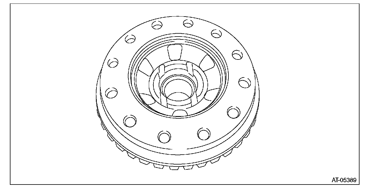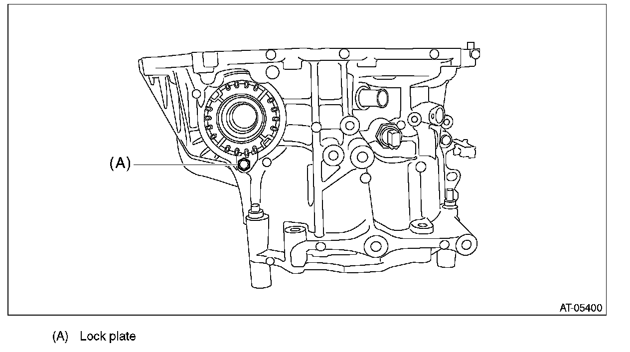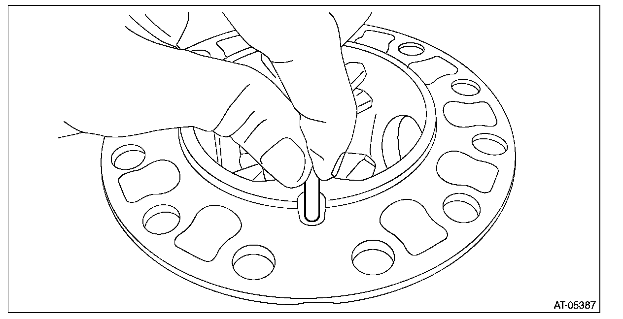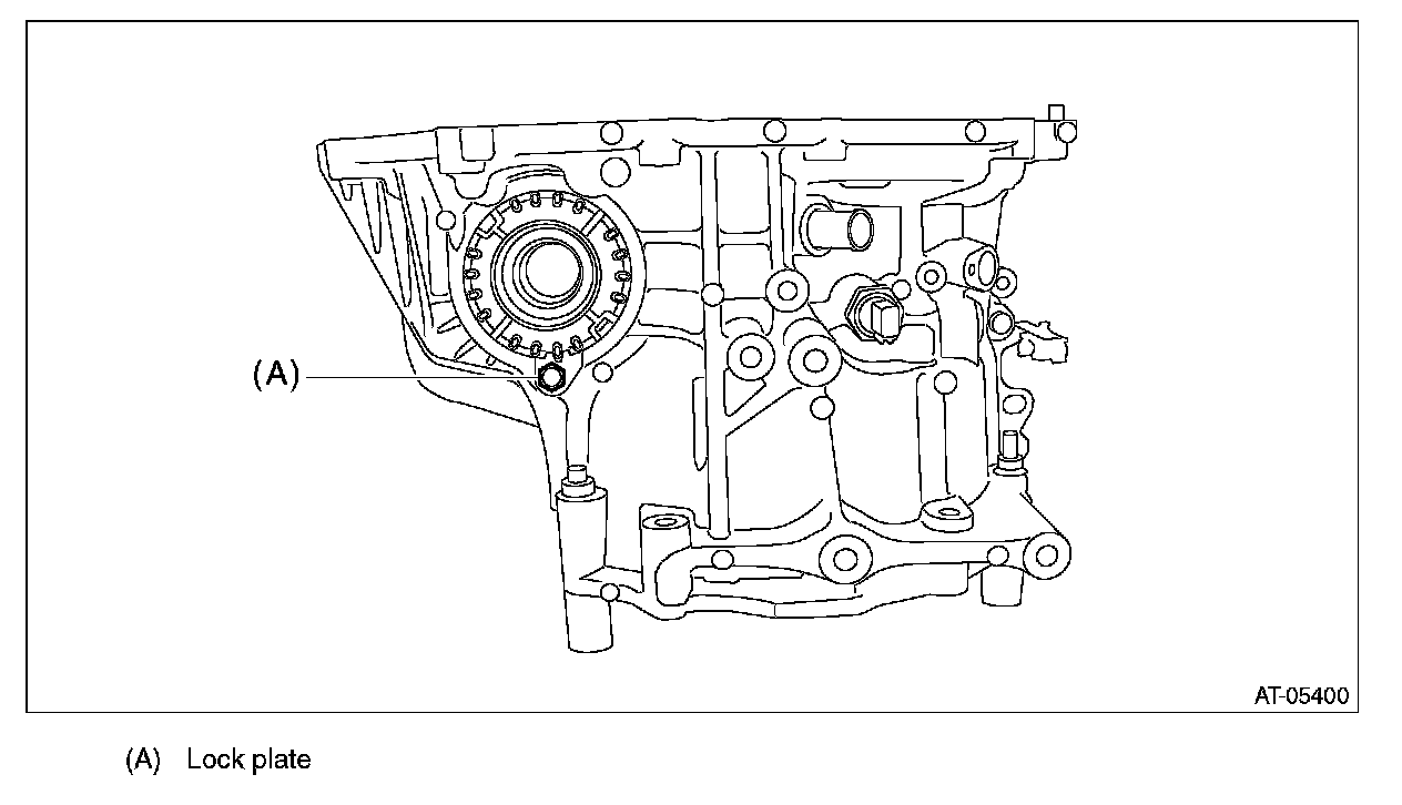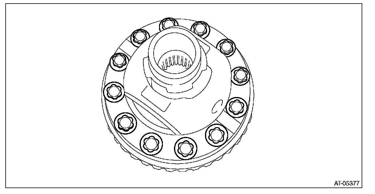 ^ Support the differential case assembly by hand to avoid damaging the retainer mounting hole of the converter case.