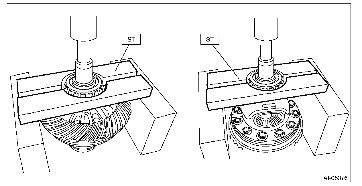 9) Using the ST, install the left and right taper roller bearings.