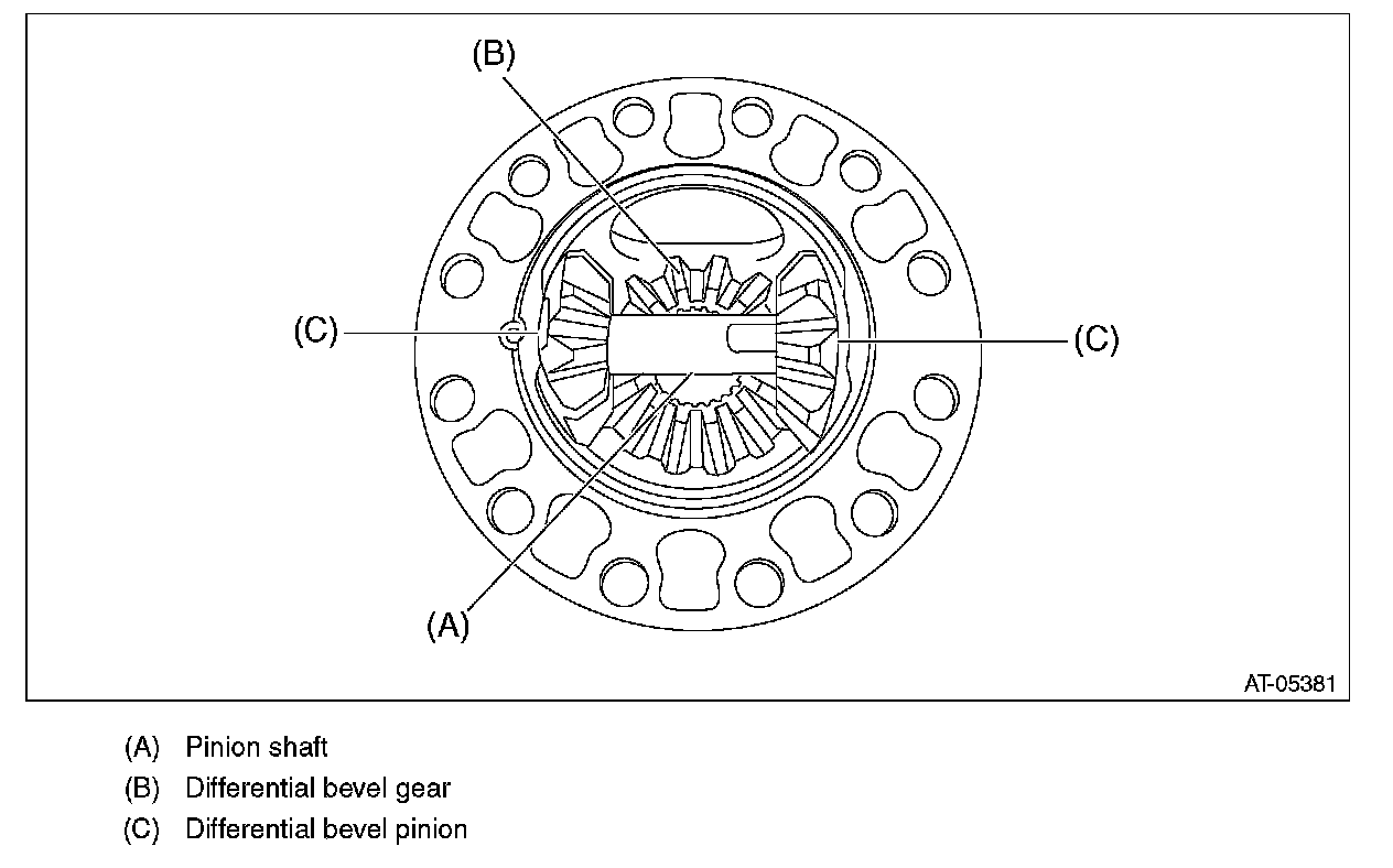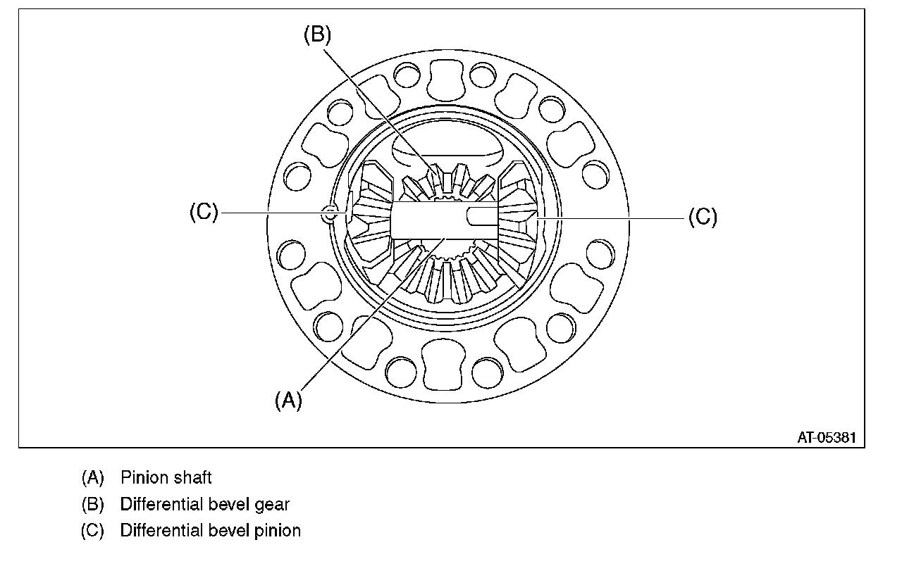6) Remove the pinion shaft, then remove the differential bevel gear, washer and differential bevel pinion.