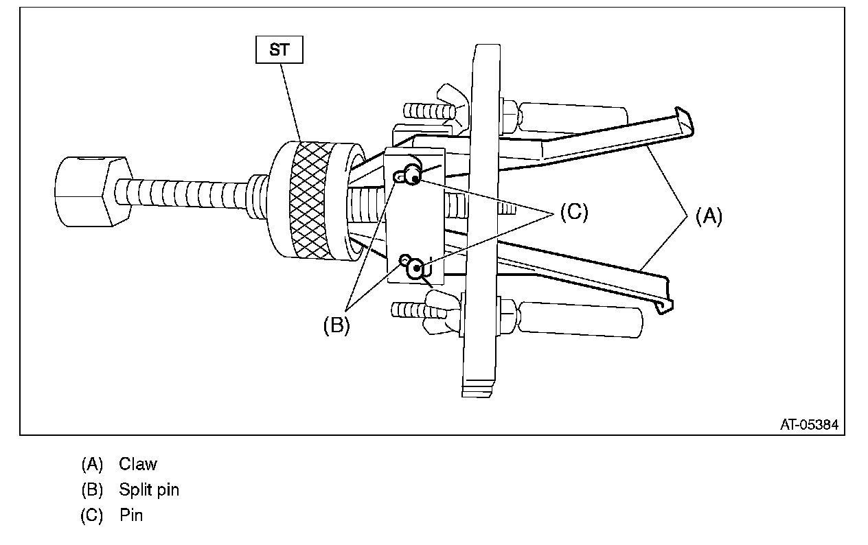 3) Remove the split pin (ST), and then remove the claw.