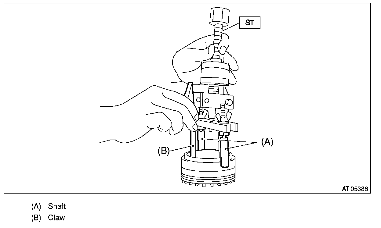 6) Hold the shaft of ST to avoid removing from side retainer, and then remove the bearing outer race.