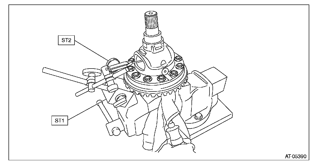 7) While checking the tightening angle with the ST, further tighten the hypoid driven gear mounting bolts.