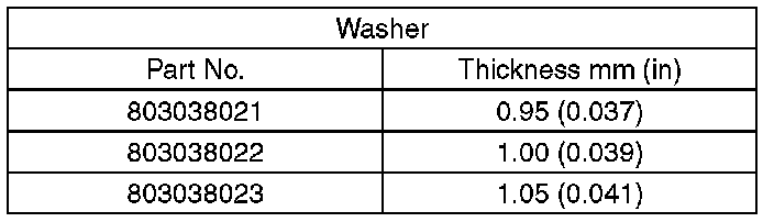 (3) If the backlash is not within specification, select a washer from the table below and replace.