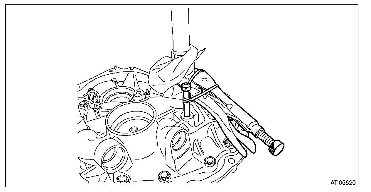 ^ When measuring, fix the differential bevel pinion gear in place with a screwdriver covered with cloth, or a similar tool.