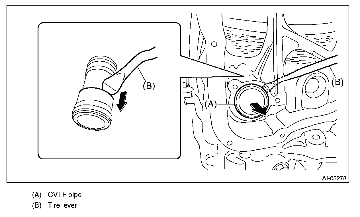 Remove by hooking the stepped portion of CVTF pipe with a tire lever etc.