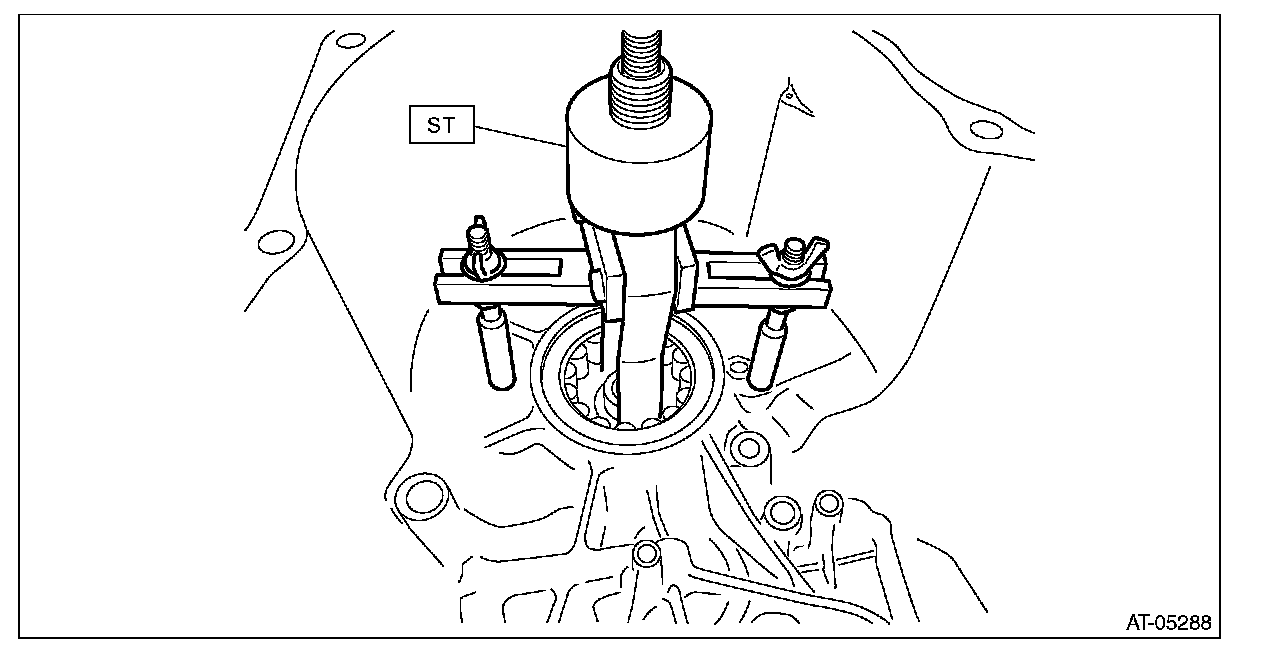 7) Using the ST, remove the roller bearing on primary pulley side.