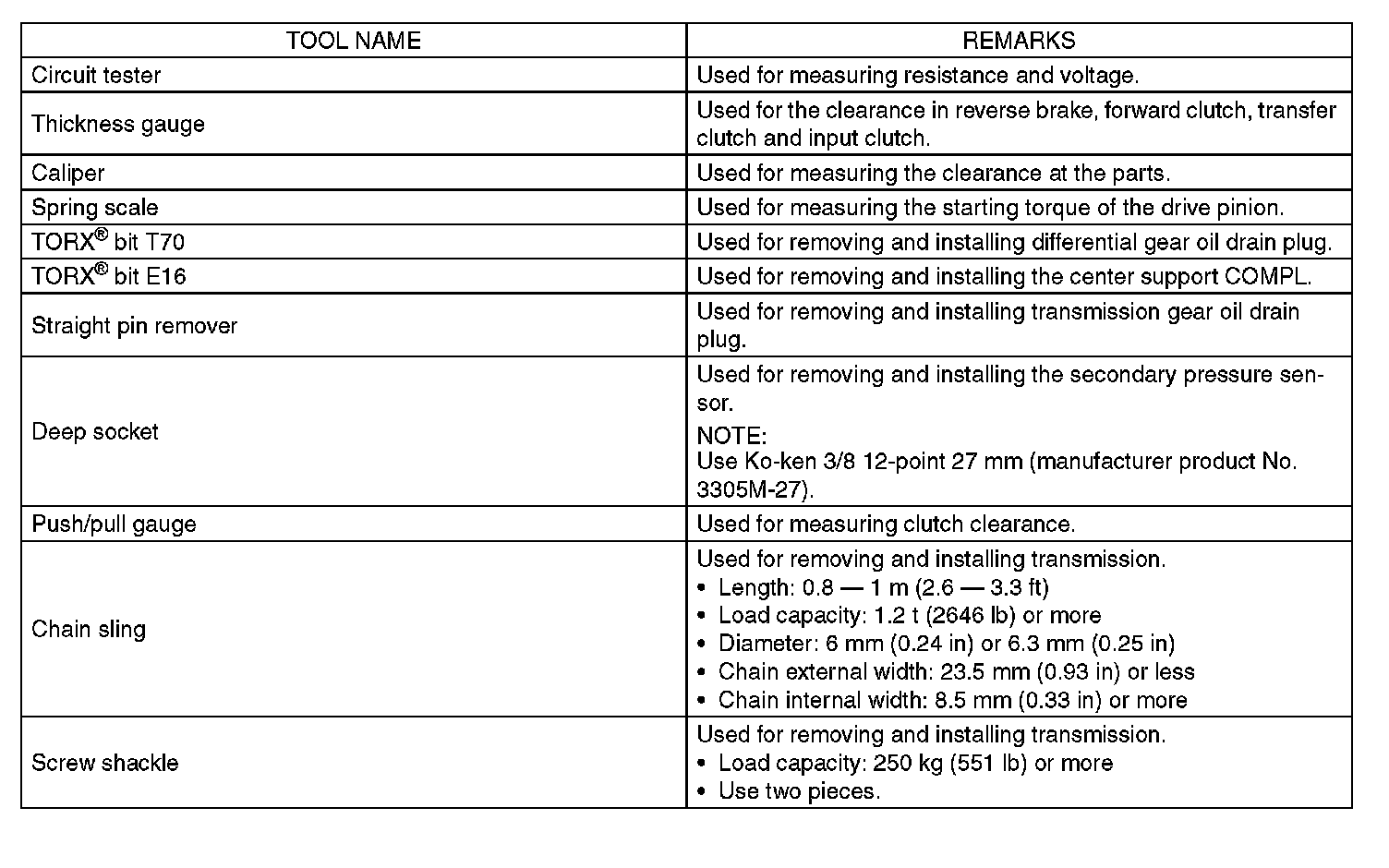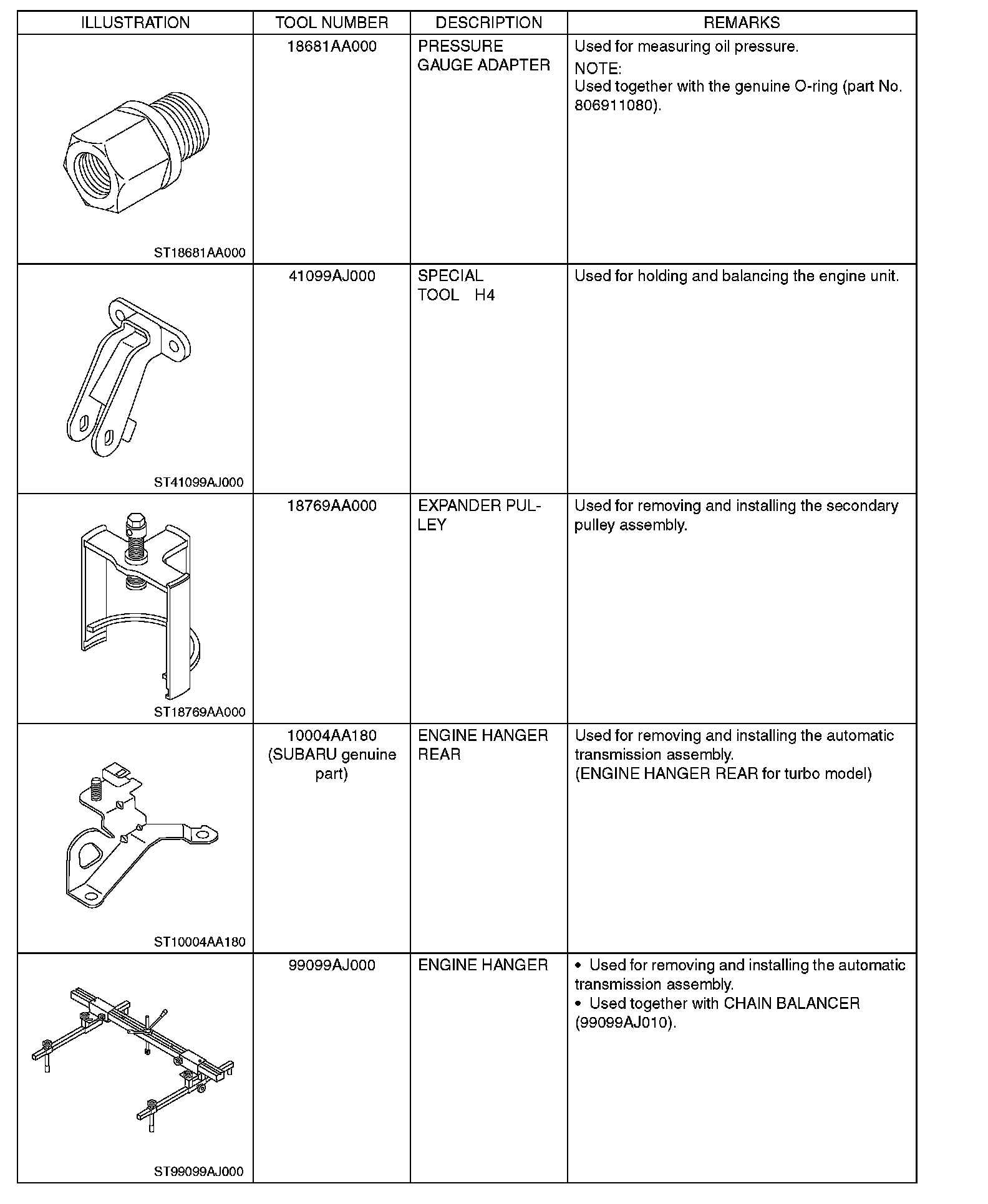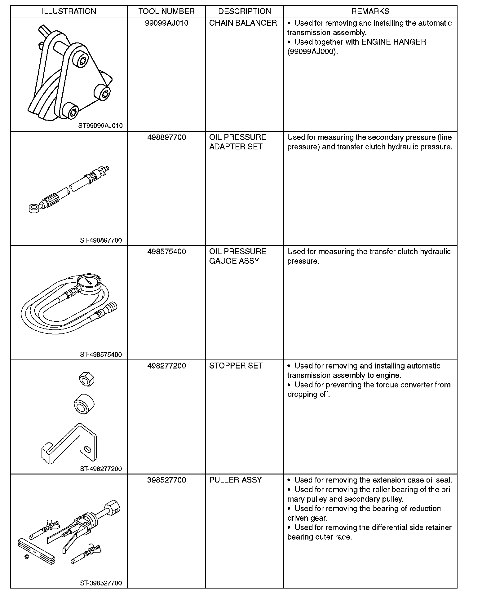 Continuously Variable Transmission/Transaxle: Tools and Equipment