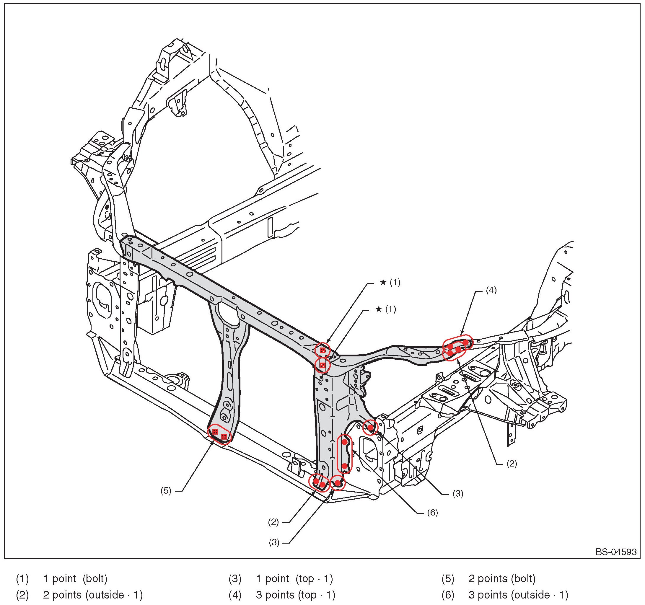 For locations marked by *, the welding method and the number of welding points are the same on the left and the right.