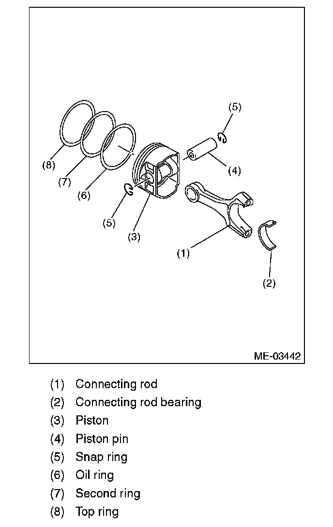 5) Check the piston pin snap ring for distortion, cracks and wear.