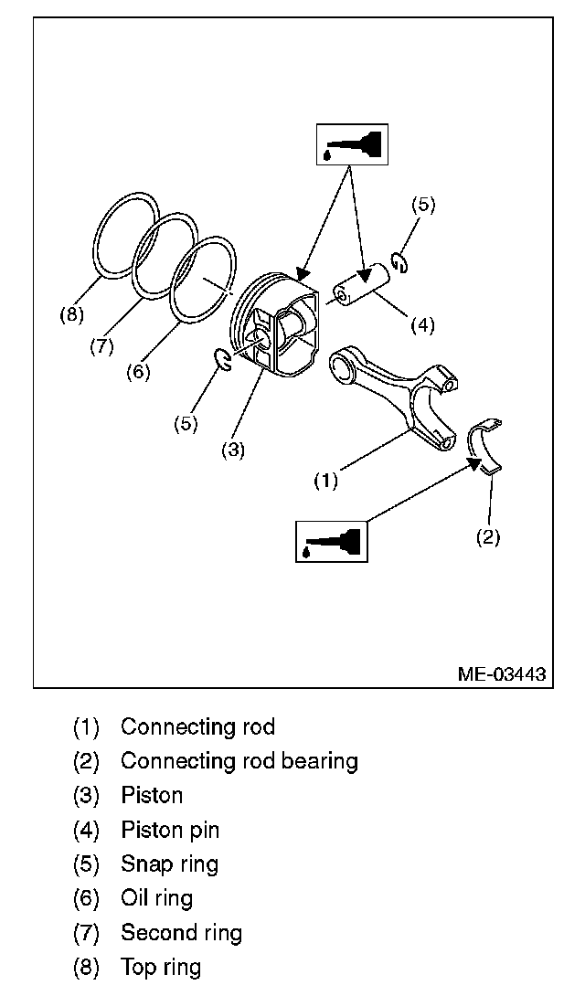 3) Apply engine oil to the piston pin, and attach the piston pin.