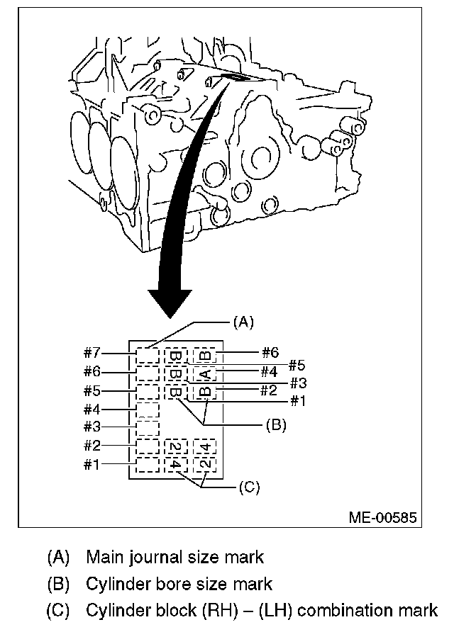 1) The cylinder bore size is stamped on the front upper face of the cylinder block.