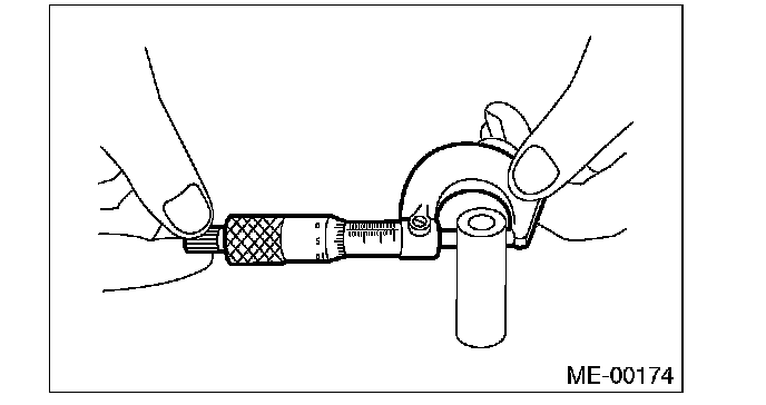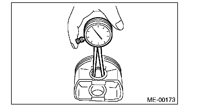 7) Measure the piston pin clearance at connecting rod small end. If the measured value is not within the standard, replace it with a new part.