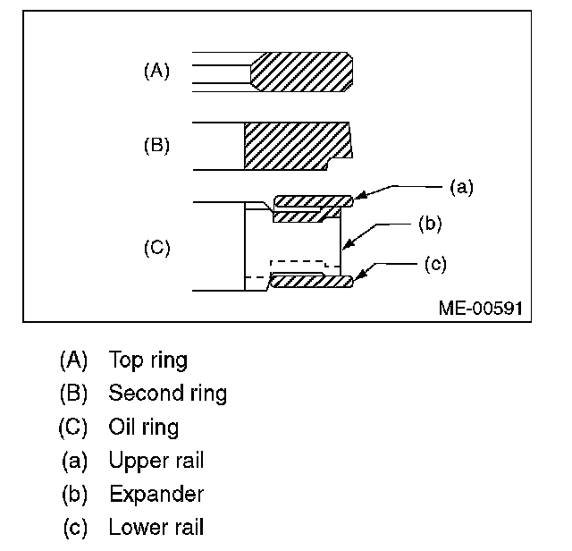 ^ Oil ring consists of the upper rail, expander and lower rail. When installing to the piston, be careful of the direction of each rail.