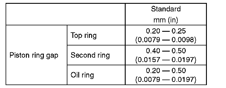 2) Squarely place the piston ring and oil ring in cylinder, and measure the piston ring gap with a thickness gauge.