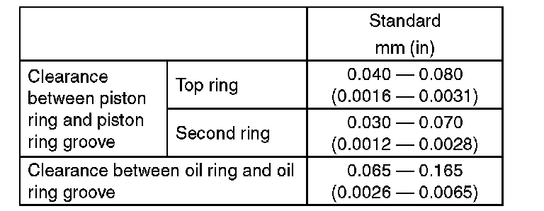 Before measuring the clearance, clean the piston ring groove and piston ring.