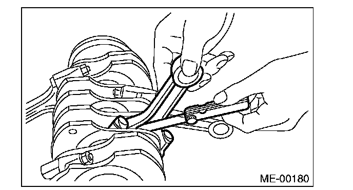 6) Measure the oil clearance on each crankshaft bearing using plastigauge. If the measured value is out of standard, replace the defective bearing with an undersize one, and replace or grind to correct the crankshaft as necessary.