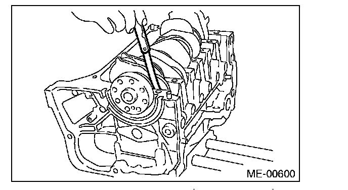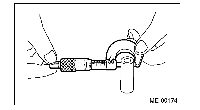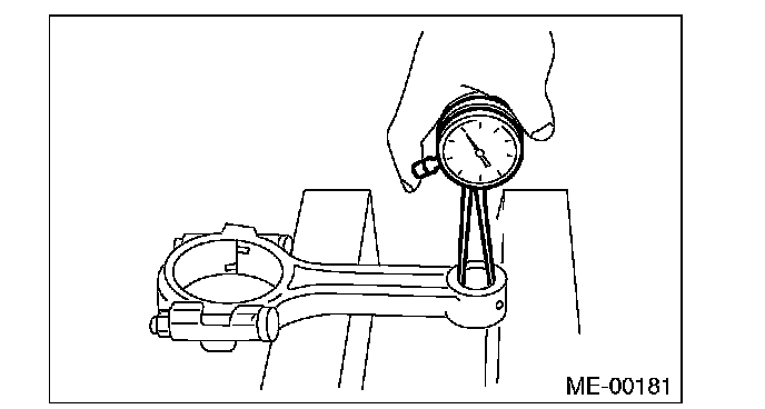 3) Install the connecting rod with bearings attached to the crankshaft, and using a thickness gauge, measure the thrust clearance. If the thrust clearance exceeds the standard or uneven wear is found, replace the connecting rod.