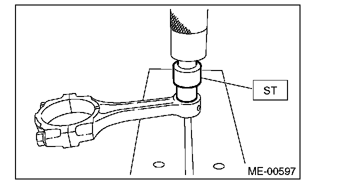 (2) Press the bushing with the ST after applying oil on the periphery of new bushing.