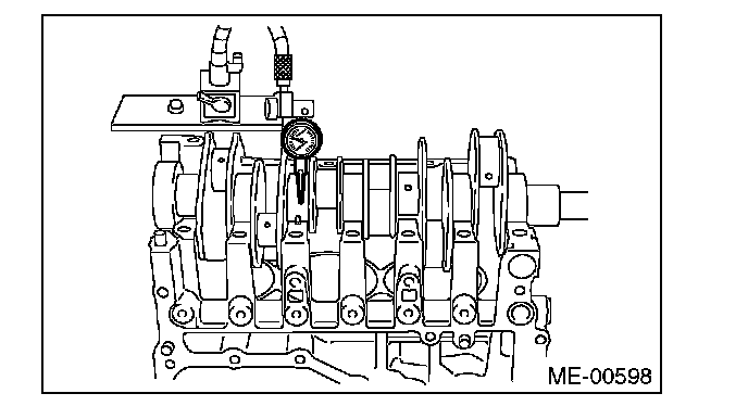 If a suitable V-block is not available, using the #1 and #7 crankshaft bearings on cylinder block, position the crankshaft on cylinder block. Then, measure the crankshaft bend using a dial gauge.
