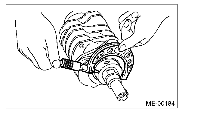 1) Clean the crankshaft completely, and check it for cracks using liquid penetrant tester. If defective, replace the crankshaft.