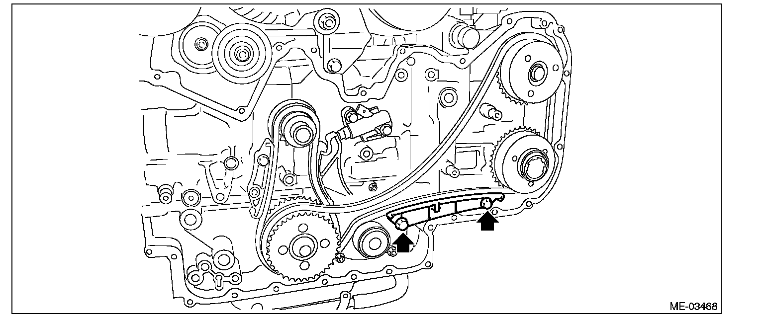 12) Remove the chain guide (LH: between cams).