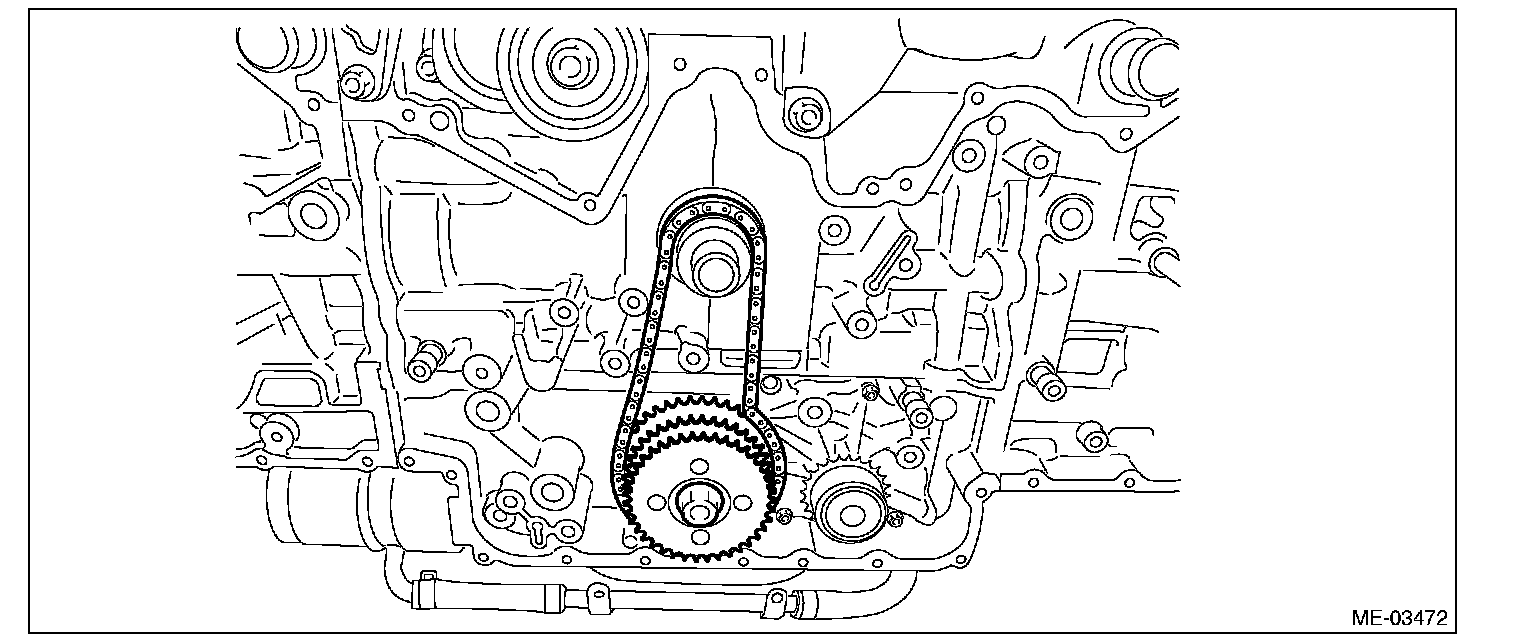 ^ Do not rotate the crankshaft and cam sprocket before completing timing chain installation.