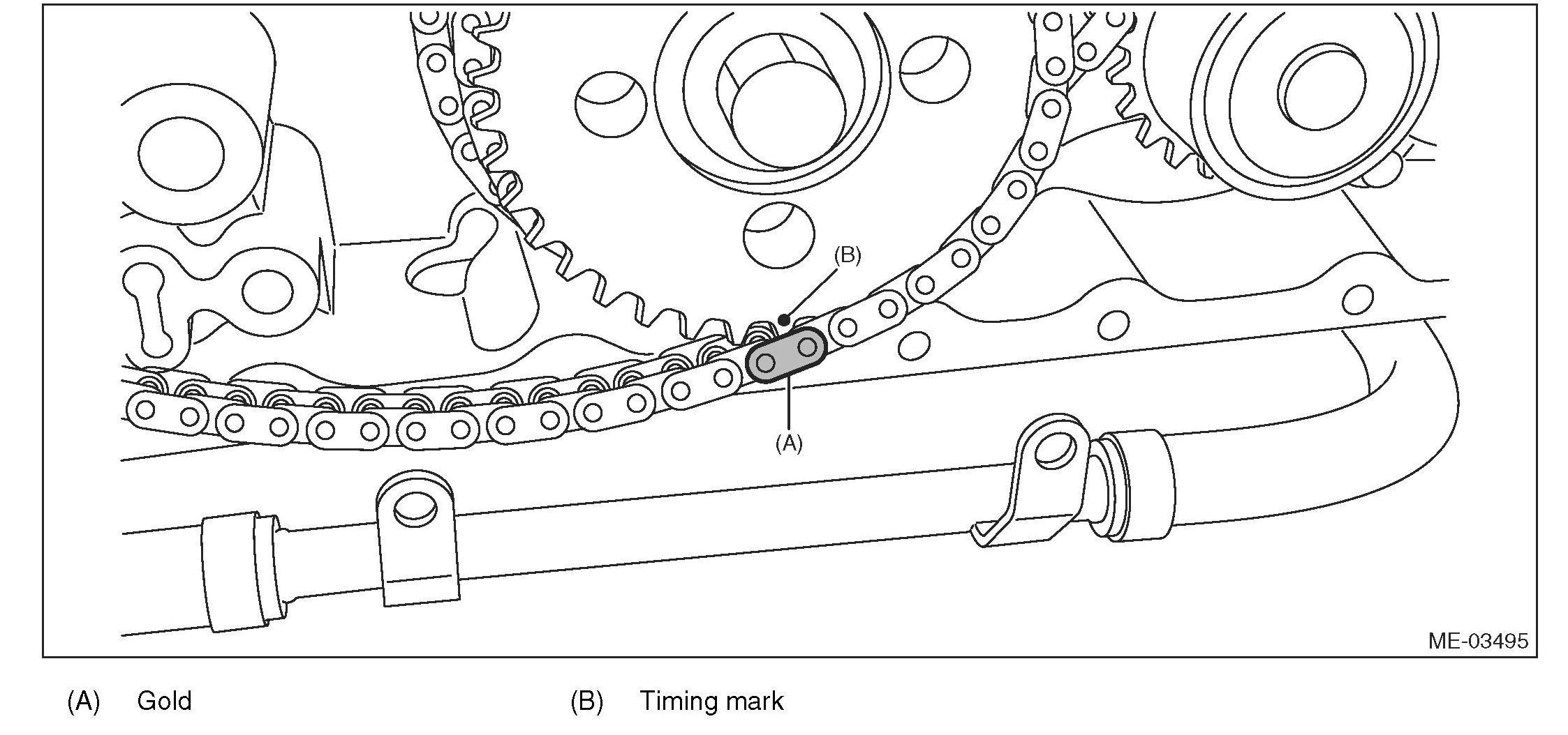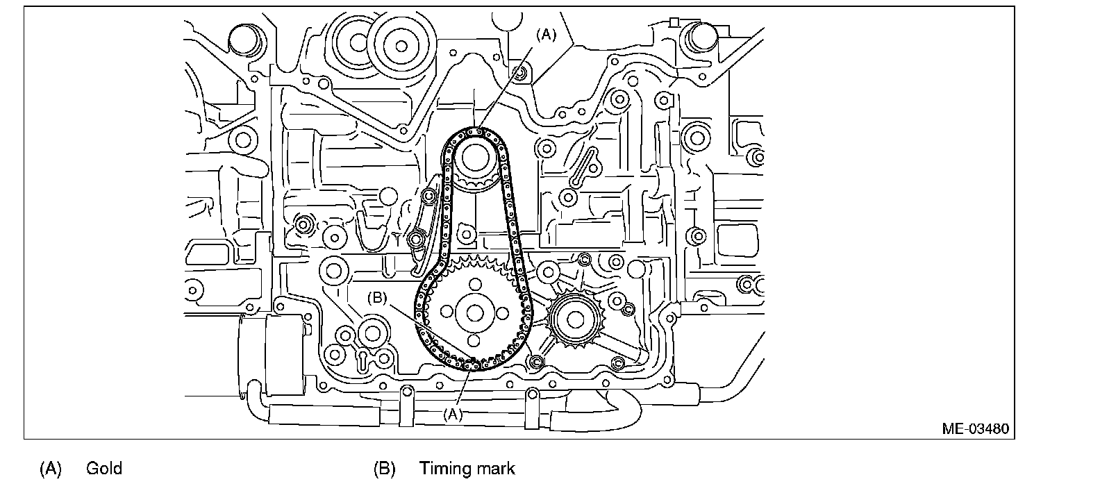 (1) Match the timing chain mark (gold) to the timing mark position of the idler sprocket.