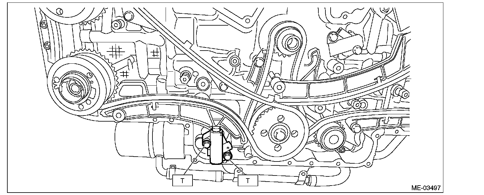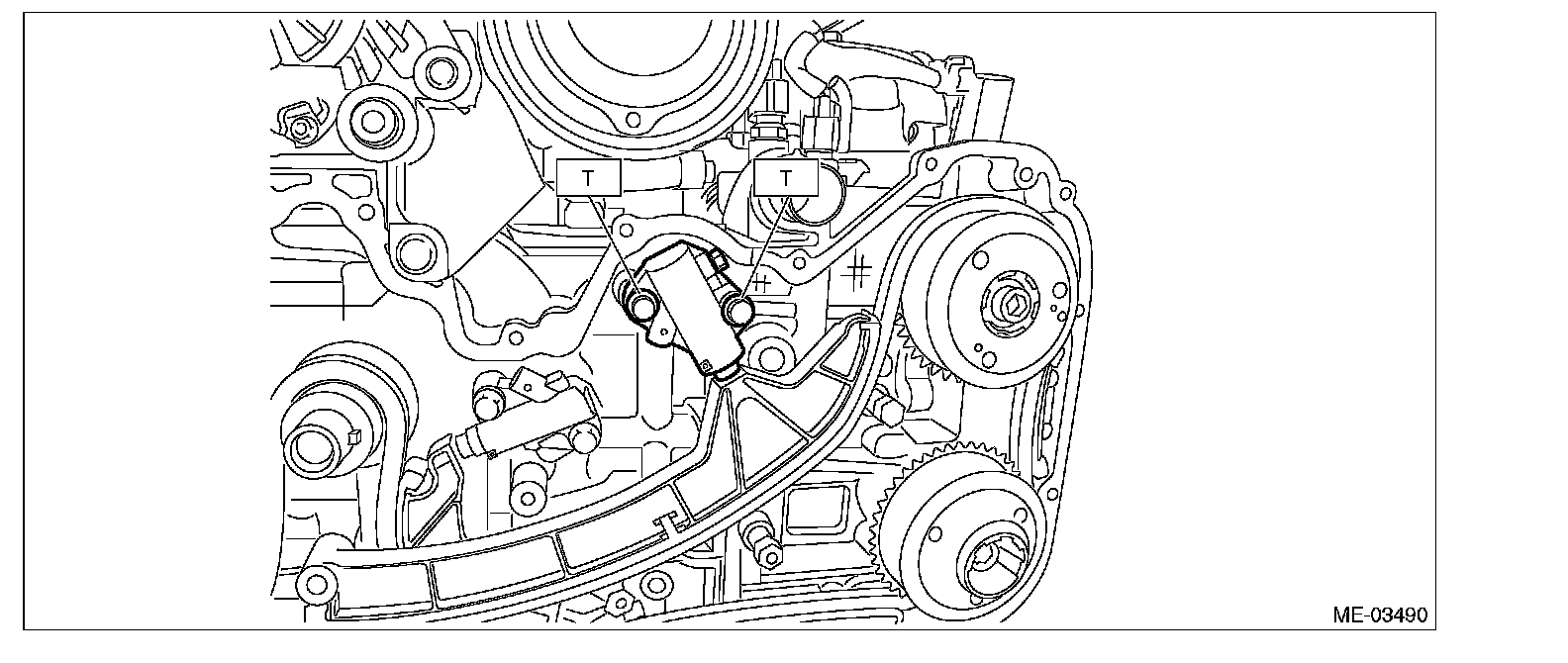 ^ Make sure that there is a bolt attached on the side face of the chain tensioner housing.